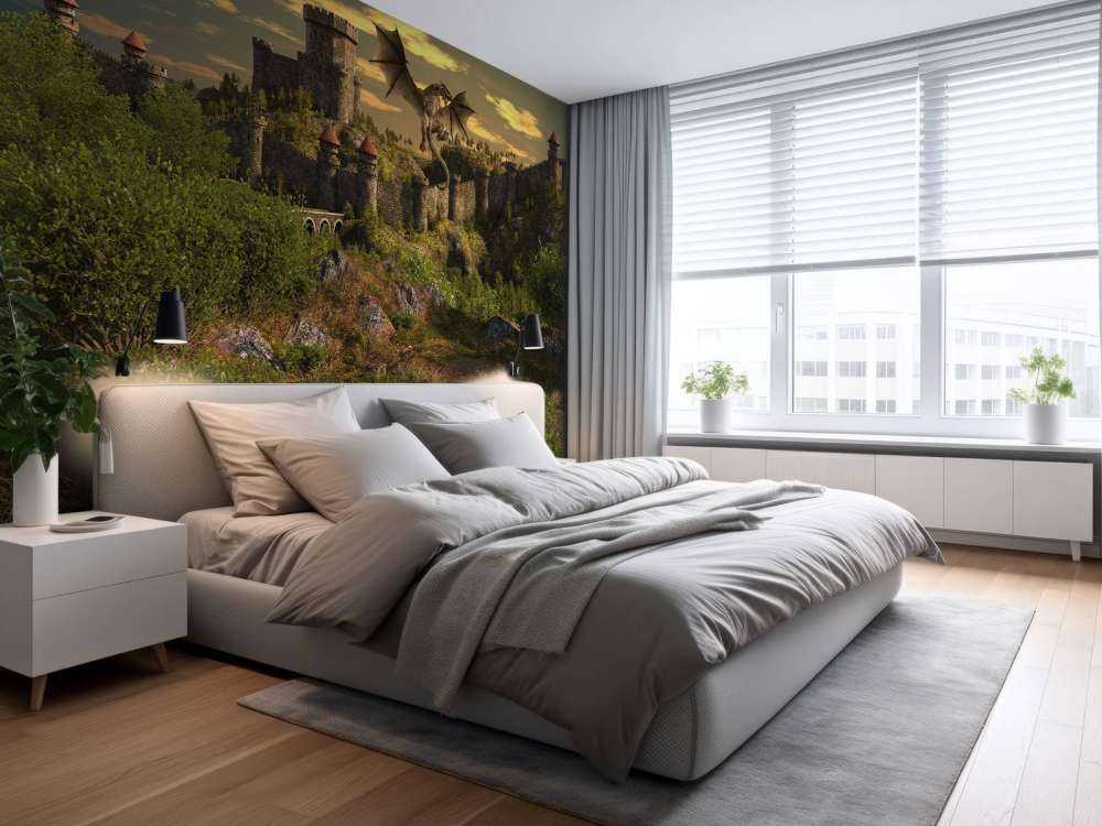 Ein aggressiver Drache, der das Schloss bewacht. Kombinieren Sie diese Fototapete im Kinderzimmer, und schaffen Sie ein cooles Kinderzimmer.