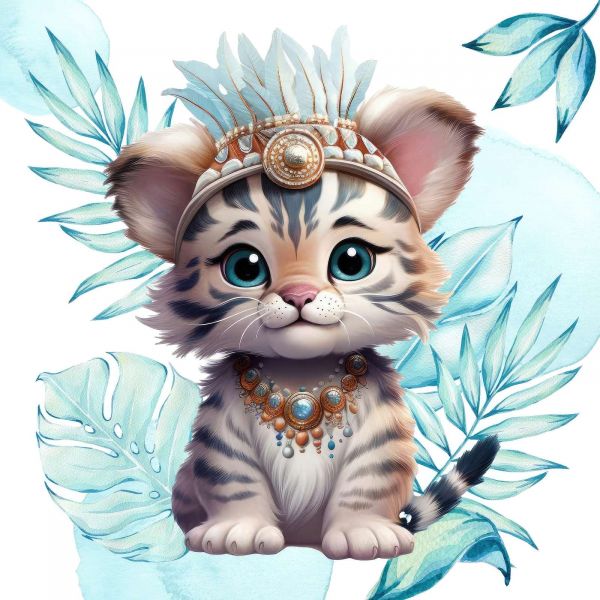 Babytiger und blaues Blatt in verschiedenen Materialien