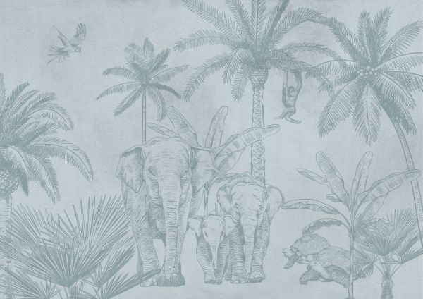 Tapete - Elefanten blau
