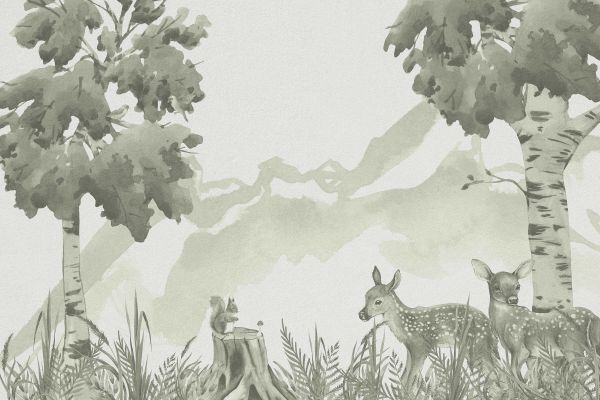 Zwei niedliche Rehe erkunden den Wald in der Farbe Grün.