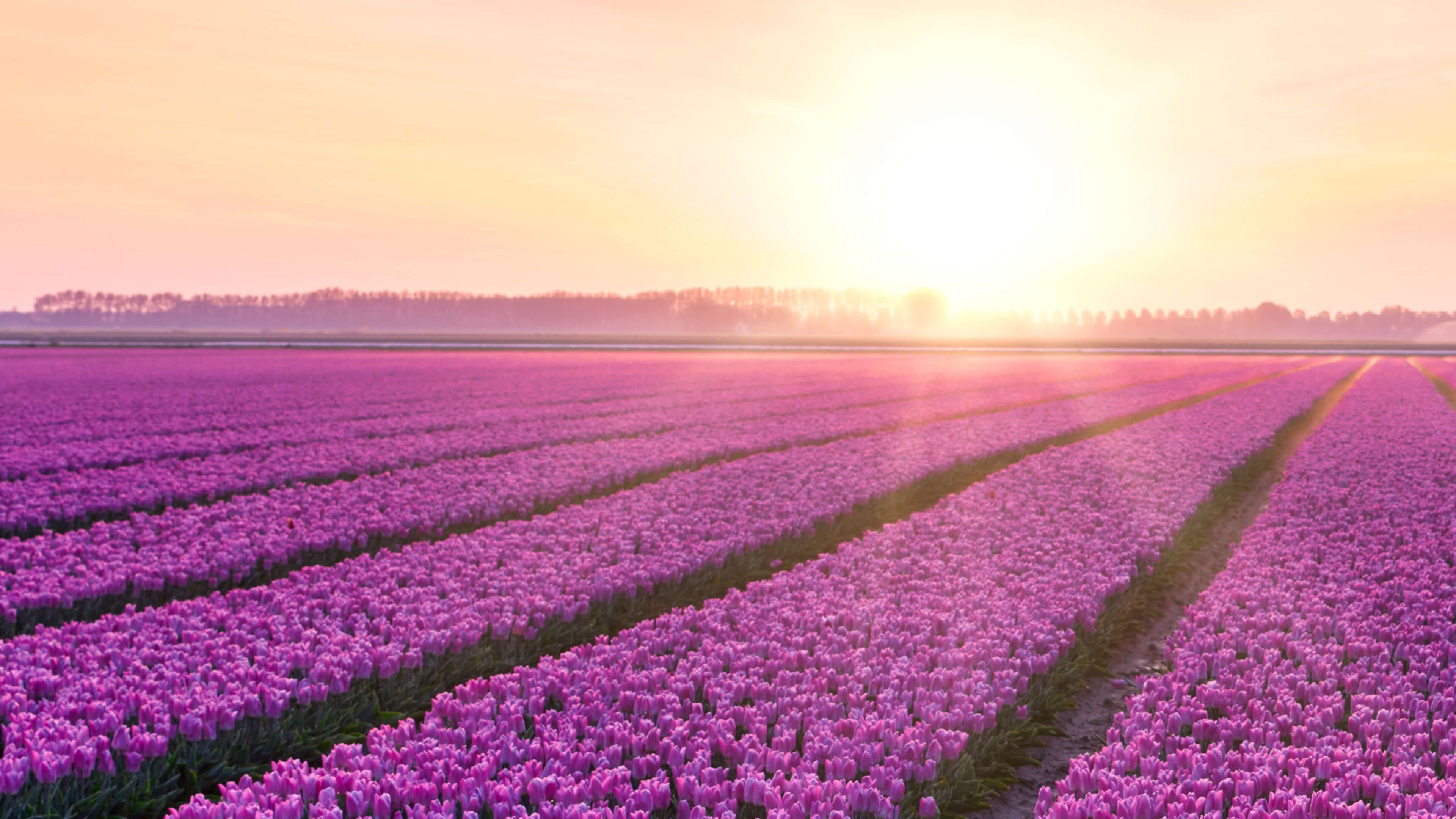 Tapete - Tulpenfeld bei Sonnenaufgang