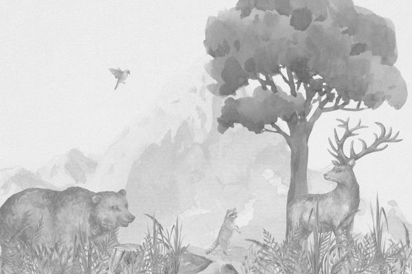 Tapete - Waldtiere in Schwarz und Weiß