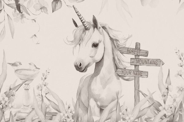 Fototapete Baby-Einhorn mit Pflanzen beige