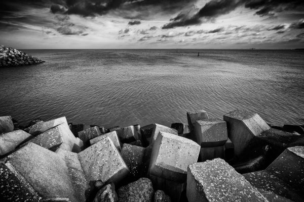 Fototapete Betonsteine für den Hafen von Cadzand Bad