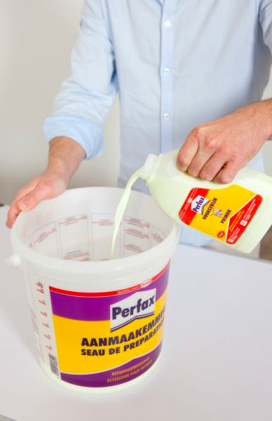 Am besten tragen Sie die Grundierung beziehungsweise den Primer unverdünnt auf die Wand auf. Haben Sie es mit einer großen Oberfläche (> 10m2) zu tun, und ist das Saugverhalten der Wand nicht allzu stark? Dann darf die Grundierung auch verdünnt werden. Das maximale Mischungsverhältnis beträgt 2:1. Also kommen maximal 2 Liter Wasser auf 1 Liter Tiefengrund. - Tragen Sie die Grundierung mit einem Pinsel auf. Oftmals sind Primer gelblich. Das erleichtert es nämlich zu erkennen, wo Sie bereits Tiefengrund aufgetragen haben und wo nicht.