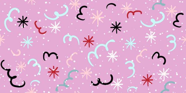 Ein verspieltes Muster mit geschwungenen Ranken, Sternchen und Punkten auf einem lilafarbenen Hintergrund – ideal für festliche Anlässe oder heitere Innenräume.