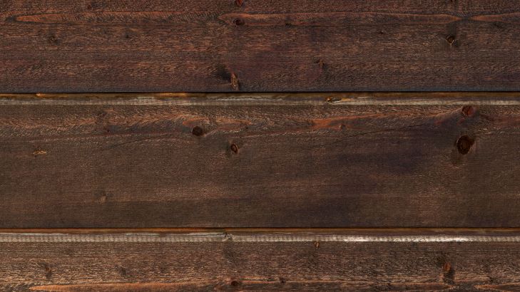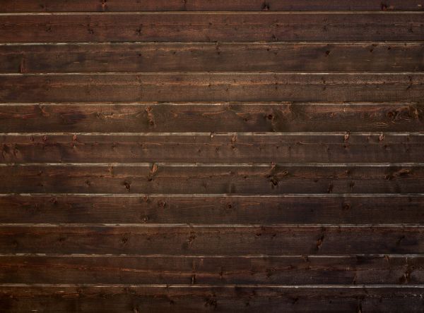 Vertikale dunkle Holzdielen. Die schöne braune Farbe dieses Holzes verleiht dem Raum sofort eine warme und gemütliche Atmosphäre.