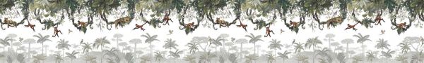 Durch die hohe Platzierung der Illustrationen bleibt optisch viel Raum am unteren Teil der Wand, was es ideal macht für über einem Bett oder einer Kommode. Das Muster ist reichhaltig, verspielt und perfekt ausbalanciert – eine tropische Dekoration, die weiterhin überrascht und inspiriert und jedem Raum eine Prise Wildnis verleiht.