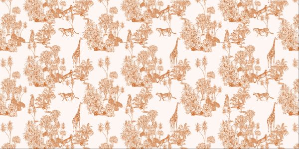 Eine orangefarbene Illustration von Geparden und einer Giraffe in der Natur
