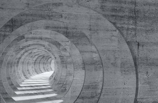 Ein 3D-Tunnel aus Beton, der aus mehreren freistehenden Bögen besteht.