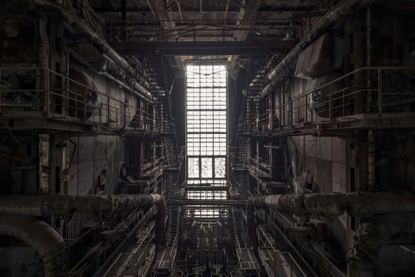 Ein verlassener Heizungskeller auf Fototapete. Kombinieren Sie diese Fototapete in Ihrem Haus und schaffen Sie eine industrielle Atmosphäre zu Hause.