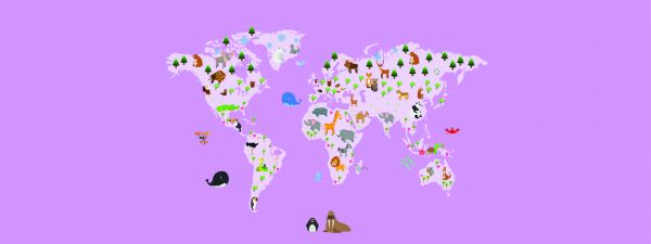 Lernen Sie die Welt und ihre Tiere mit dieser unterhaltsamen und lehrreichen Weltkarte kennen.