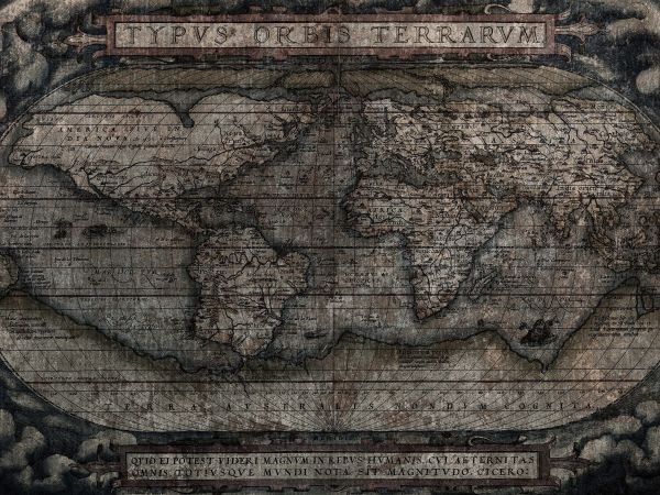 Eine Weltkarte in Latein auf Fototapete. Kombinieren Sie diese Tapete in Ihrer Wohnung und schaffen Sie noch mehr Atmosphäre.