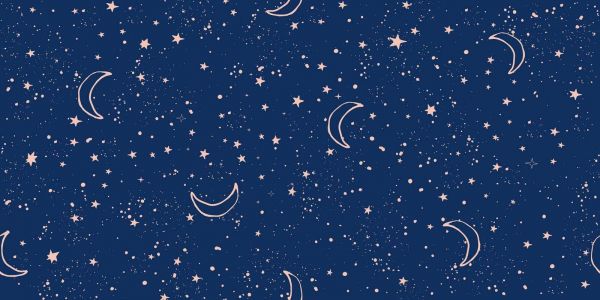 Ein stimmungsvolles Nachtszenario mit sanften Mondsicheln und einer Fülle von Sternen, skizziert in zartem Rosa auf tiefem Nachtblau. Das Design strahlt Ruhe und Magie aus und ist perfekt für eine ruhige, verträumte Atmosphäre geeignet.