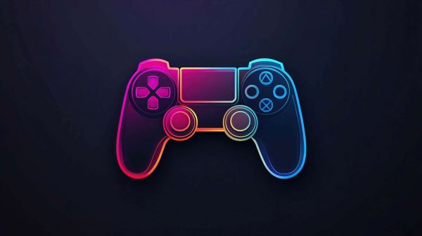 Ein futuristisches Design mit einer Neonlinienzeichnung eines Gamecontrollers auf einem dunklen Hintergrund. Der farbenfrohe Glanz in Blau-, Rosa- und Lilatönen erzeugt einen dynamischen und energiegeladenen Effekt, perfekt für Gamer, die ihren Raum mit einer modernen und digitalen Atmosphäre füllen möchten.