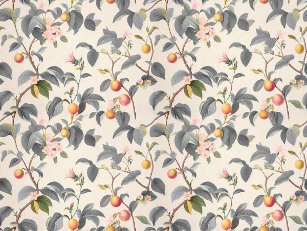 Feine Zweige mit runden Früchten in warmen Rot- und Gelbtönen werden kombiniert mit sanfter rosa Blüte und eleganten graublauen Blättern. Der helle Hintergrund und das wiederholte Muster verleihen dem Ganzen eine ruhige, klassische und raffinierte Ausstrahlung. Lange Produktbeschreibung: Dieses zierliche Muster zeigt einen dekorativen Obstbaum mit schlanken Zweigen, reifen Früchten und subtiler Blüte. Die Früchte in Tönen von Goldgelb, Aprikose und sanftem Rot bilden einen warmen Kontrast zu den kühlen graublauen Blättern. Kleine rosa Blumen sorgen für eine frische und romantische Nuance. Der cremefarbene Hintergrund hält das Ganze hell und im Gleichgewicht, während das wiederholte Muster einen harmonischen und zeitlosen Charakter schafft.