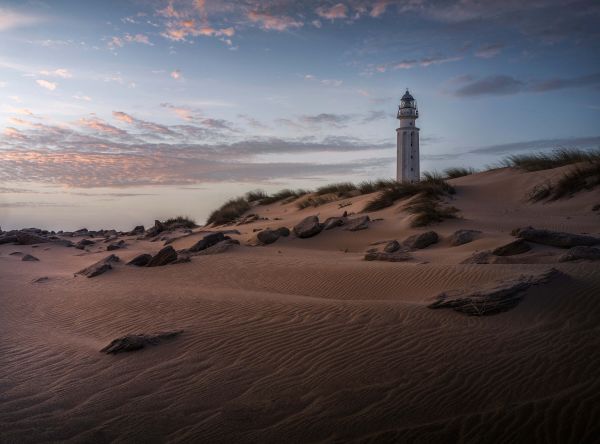 Ein Leuchtturm an einem ruhigen Strand. Kombinieren Sie diese zum Beispiel im Wohn- oder Schlafzimmer.