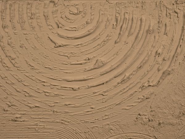 Schöner strukturierter Kreis, der einen schönen Kontrast zu den geraden Formen in Ihrer Einrichtung bildet. Sie können alle kleinen Details der Struktur erkennen. Dieses Design lässt sich leicht mit jeder Einrichtung kombinieren. Farbe: Goldbraun