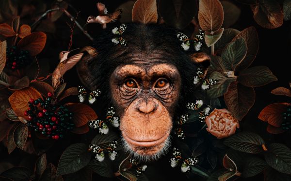 Tropical Chimpanzee verleiht jedem Raum einen einzigartigen Look. Diese Tapete lässt den Schimpansen aus der Wand kommen.