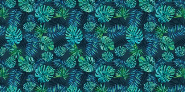 Ein Muster mit Monstera und Palmenblättern aus Aquarell.