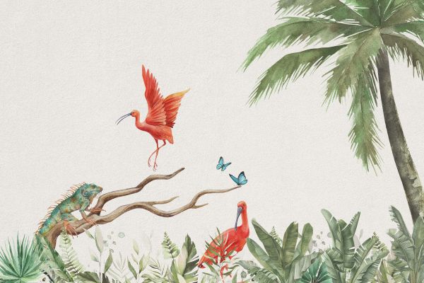 Fototapete Zweig mit Dschungeltieren
